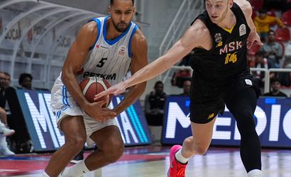 Türkiye Sigorta Basketbol Süper Ligi'nin 5. haftasında Aliağa Petkimspor ile Mersin Spor, ENKA Spor Salonu'nda karşılaştı. Bir pozisyonda, Aliağa Petkimspor'dan Troy Selim Şav (15) ve Philip Alexander Scrubb (23) ile Mersin Spor'dan Anthony Dewayne Cowan (7) mücadele etti.