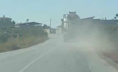 Hatay'ın Altınözü ilçesinde tek şeritli bir yolda, hızını 100 kilometreyi bulan mikser sürücüsü, arkadan gelen başka bir araçtaki sürücü tarafından cep telefonu kamerasıyla görüntülendi.