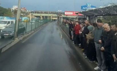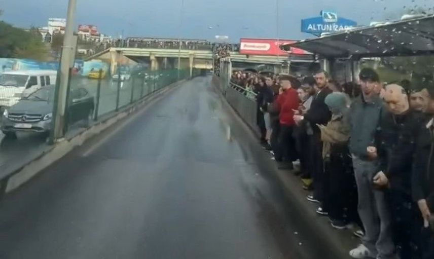Metrobüse binme noktalarından köprü üstlerine kadar uzayan kuyruklar nedeniyle yüzlerce kişi mağdur olurken, yaşanan yoğunluk araç içindeki bir yolcu tarafından cep telefonu kamerasıyla görüntülendi.