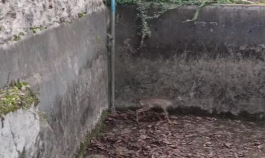 Boş havuza düşen yavru karacayı itfaiye ekipleri kurtardı