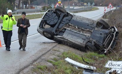 Şerafettin Esen (72) idaresindeki 07 PP 444 plakalı otomobil, Erzurum'dan Balıkesir'e seyir halindeyken Amasya'nın Taşova ilçesine bağlı Durucasu köyü mevkiinde kontrolden çıkarak tabelalara çarpıp takla attı.