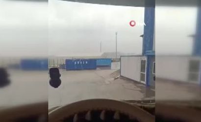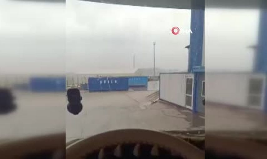 Liman sahasındaki konteynerler fırtınanın etkisiyle savrulurken, bir liman çalışanı da uçan bir panelin çarpması sonucu yere düştü.