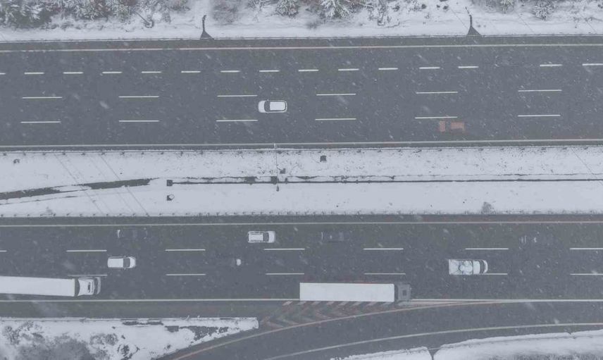 DÜZCE’DE ETKİLİ OLAN KAR YAĞIŞI SEBEBİ İLE ARALIKLARLA ANADOLU OTOYOLU BOLU DAĞI GEÇİŞİNDE KISMİ TRAFİĞE KAPANIRKEN, O ANLAR HAVADAN DRONE İLE GÖRÜNTÜLENDİ.