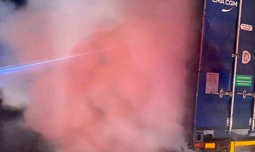 Sürücünün müdahalesi: Durumu fark eden sürücü aracı emniyet şeridine çekti, tırın kupasını dorseden ayırarak itfaiye ekiplerine bilgi verdi.
