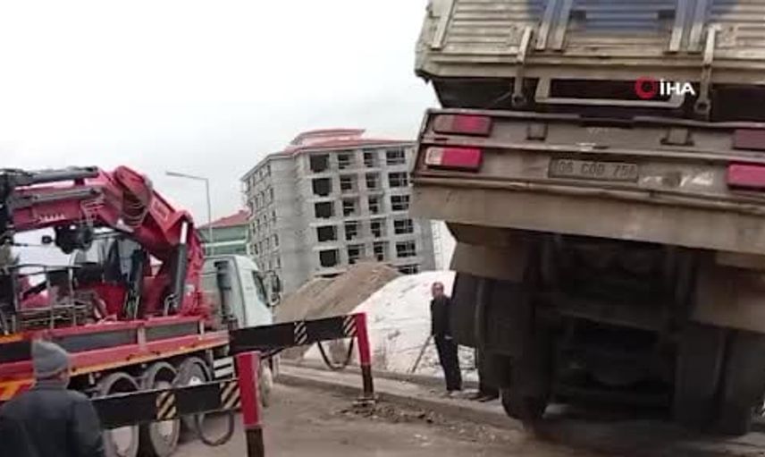 Ankara Beypazarı'nda kamyon kontrolden çıktı, park halindeki araca çarptı