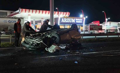 E90 karayolunda meydana gelen kazada otomobil defalarca takla attı
