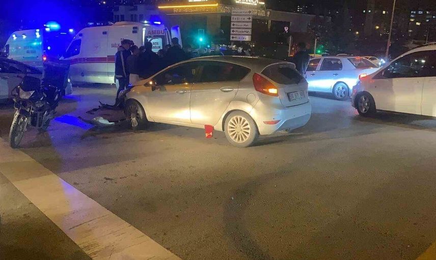 Ankara Etimesgut'ta kırmızı ışık ihlali: Otomobil iki motosiklete çarptı