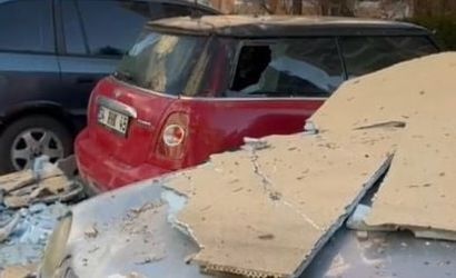 Söz konusu anlar, bir vatandaşın cep telefonu kamerası tarafından kayda alındı. Kayda geçen görüntülerde uçan yalıtım malzemelerinin araçlara çarpması ve alanda oluşan hasar görülüyor.