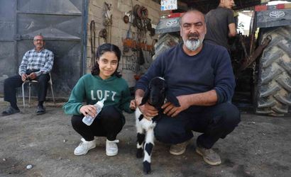 Antakya, Bitiren Mahallesi — Hatay'da annesi telef olan kuzuyu sahiplenen amca ve yeğeni, 'Karabaş' adını verdikleri kuzuyu bebek gibi büyütüyor. Kaynakçılık ve tesisatçılık yapan Hakan Atay ile yeğeni Asu Atay, kuzuyu biberonla besliyor ve sürekli yanlarından ayırmıyor.