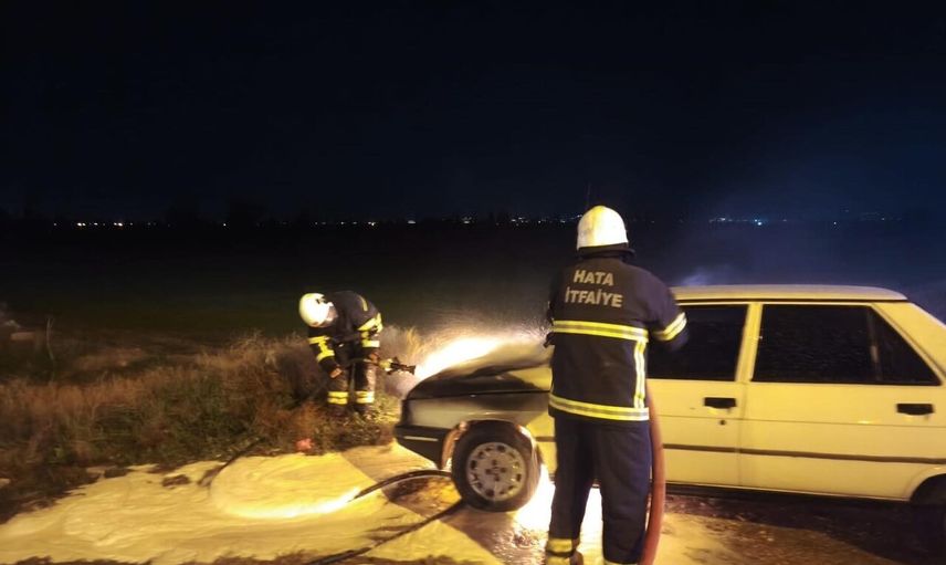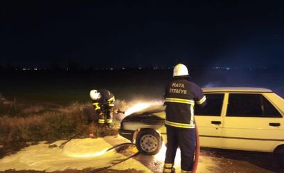 Antakya'da motor kısmı yanan otomobil söndürüldü