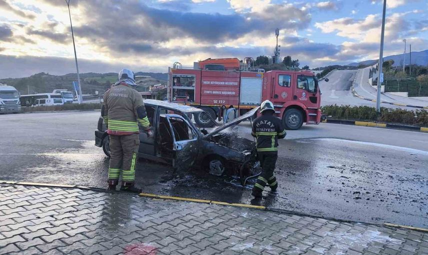 Sürücünün durumu 112 Acil Çağrı Merkezine bildirmesi üzerine bölgeye sevk edilen Hatay Büyükşehir Belediyesi itfaiye ekipleri kısa sürede müdahale ederek yangını söndürdü.