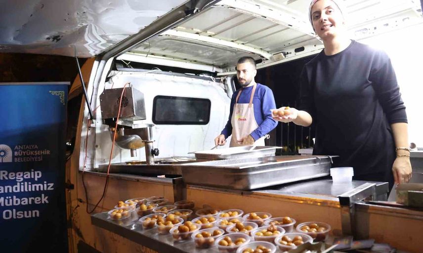 Antalya Büyükşehir Belediyesi Sosyal Hizmetler Daire Başkanlığı, Regaip Kandili'nin manevi atmosferini paylaşmak amacıyla kent genelinde ikram organizasyonu düzenledi. 19 ilçede belirlenen cami önlerinde kurulan mobil stantlarda vatandaşlara kandil simidi ve sıcak lokma ikram edildi.