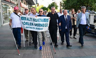 Antalya'da "Beyaz Baston Güvenlik Günü Kılavuz Çizgisini Terk Et, Beyaz Bastonu Fark Et" yürüyüşü düzenlendi. 15 Ekim Beyaz Baston Güvenlik Günü kapsamında, Altı Nokta Körler Derneği Antalya Şubesi tarafından organize edilen yürüyüş, Aydın Kanza Parkı'ndan başlayarak Cumhuriyet Meydanı'nda sona erdi.