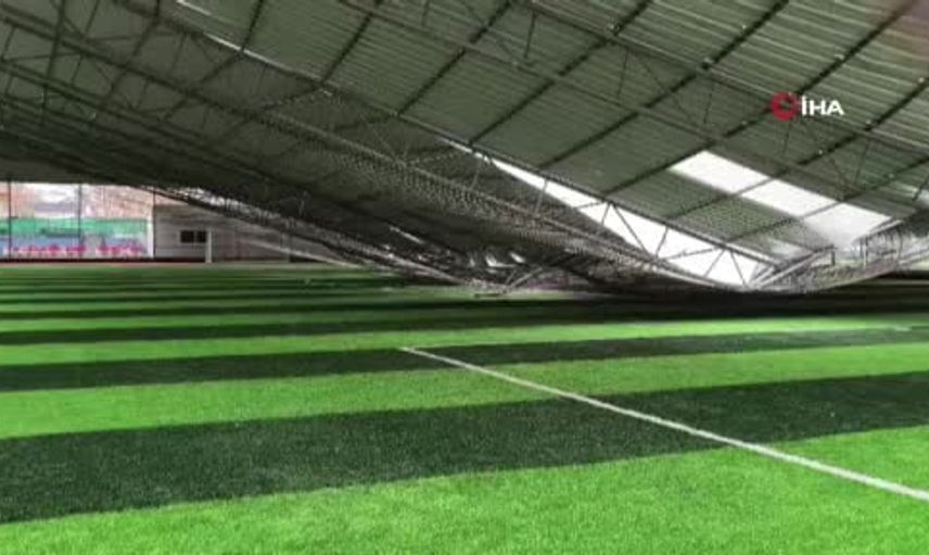 Fırtınada çöken halısahadaki hasar böyle görüntülendi