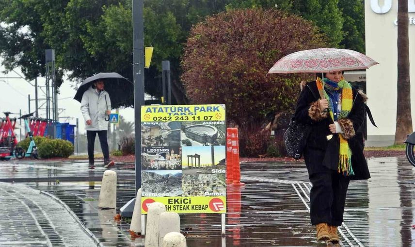Antalya'da gece başlayan sağanak öğleye doğru etkisini azalttı