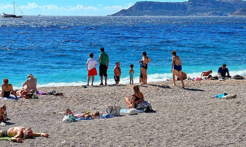 Son iki gündür etkili olan yağışların ardından Antalya'nın Kaş ilçesinde yeniden güneş yüzünü gösterdi. Bu güzel havayı değerlendirmek isteyen yerli ve yabancı turistler sahilleri doldurdu.