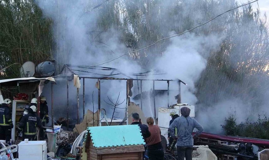 Antalya Muratpaşa'da konteyner ev alevlere teslim oldu