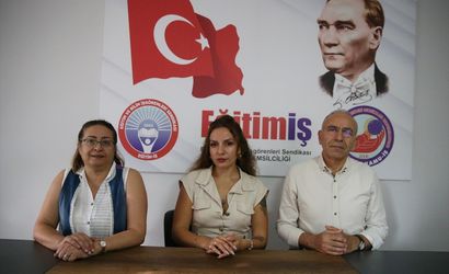 Antalya'nın Alanya ilçesinde bir ilkokulda öğretmene tokat attığı iddia edilen veli tutuklandı. Öğretmenin avukatı Bihter Gönültaş (ortada) , Eğitim-İş Sendikasının Alanya Temsilciliğinde gazetecilere yaptığı açıklamada, öğretmenin bir veli tarafından görevi başında fiziksel şiddete uğramasının eğitim ortamında hiçbir şekilde kabul edilemeyeceğini söyledi.