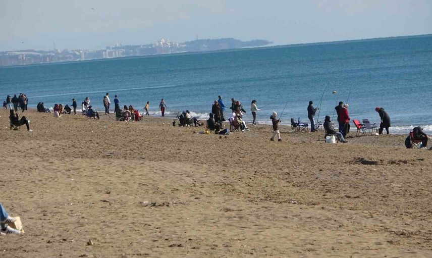 Hava sıcaklığının 8-10 derecelerde seyrettiği ocak gününde balık tutmayı tercih edenler sahil boyunca uzun halkalar oluşturdu. Aileleriyle gelenler ise piknik alanlarında güneşin ve deniz manzarasının keyfini çıkardı.