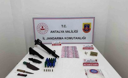 Antalya İl Jandarma Komutanlığı tarafından yürütülen çalışmada, Antalya Cumhuriyet Başsavcılığı'nın talimatıyla Kepez ilçesindeki belirlenen adreslere eş zamanlı operasyon düzenlendi. Operasyon sonucunda çok sayıda uyuşturucu madde ile silah ve mühimmat ele geçirildi, 3 şüpheli gözaltına alındı.