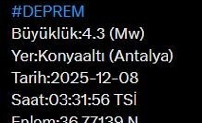 Antalya Konyaaltı'nda 4.3 büyüklüğünde deprem
