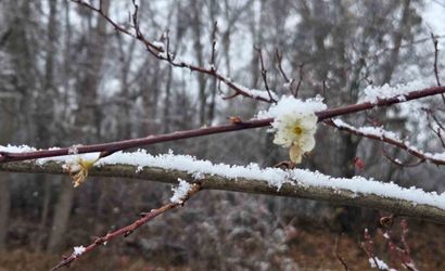 Yozgat'ın Sorgun ilçesine bağlı Araplı kasabasında, mevsim normallerinin üzerinde seyreden hava sıcaklıkları nedeniyle yaklaşık 15 gün önce çiçek açan erik ağaçları aniden bastıran kar yağışıyla kaplandı.