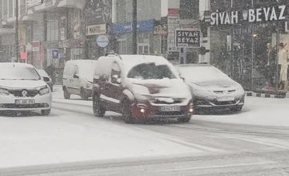 Karla kaplı kaldırımlarda yayalar yürümekte güçlük çekerken, sürücüler trafikte daha tedbirli ilerledi.