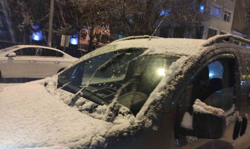 Ardahan'da akşam karı kent merkezini beyaza bürüdü