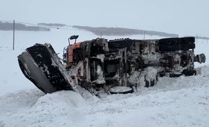 Ardahan merkezinde, Ardahan-Kars karayolu üzerinde karla mücadele çalışması yürüten bir kar küreme aracı, buzlu zeminde kontrolünü kaybederek devrildi.
