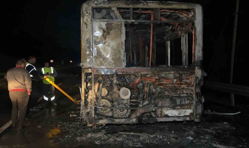 İtfaiye ekipleri yangını söndürüp soğutma çalışmalarına başladı. Küle dönen otobüste yangının çıkış sebebine ilişkin inceleme başlatıldı ve çalışmalar sürüyor.