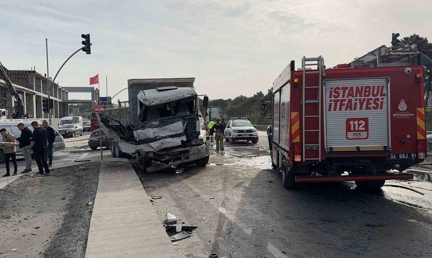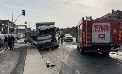 Arnavutköy'de iki kamyon çarpıştı: sürücü araç içinde sıkıştı