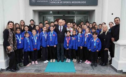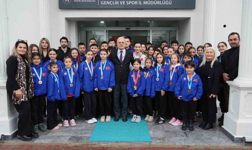 DÜZCE (İHA) – Türkiye ve Avrupa çapında dereceler elde eden wushu sporcuları ile antrenörleri, Düzce Gençlik ve Spor İl Müdürü Zekeriya Arslantürk'ü ziyaret etti.