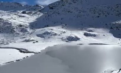Kar yağışının başlamasıyla yollar kapanırken, bölgeye ulaşabilen 3 adrenalin tutkunu gezgin karla kaplı zirveleri ve donan gölleri fotoğraflayarak tabiatın kış güzelliğini kayıt altına aldı.