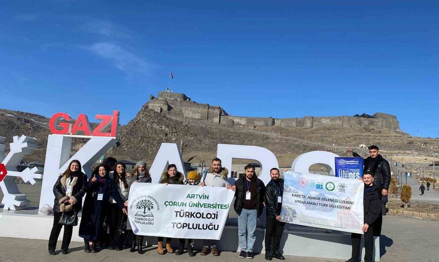 Artvin Çoruh Üniversitesi Türkoloji Topluluğu, ÜNİDES desteğiyle "Kars’ta Aşıklık geleneği üzerine uygulamalı Türk dili eğitimi" projesini hayata geçirdi.