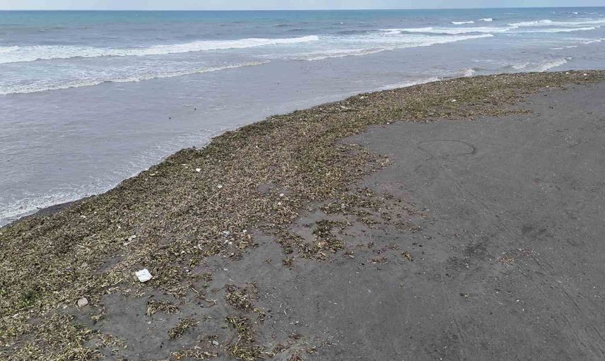 HATAY'DA YAZ AYLARINDA ASİ NEHRİN TAMAMINI KAPLAYAN İSTİLACI SU SÜMBÜLLERİ, ŞİDDETLİ FIRTINA VE YAĞIŞLA BİRLİKTE KIYIYA VURARAK SAMANDAĞ SAHİLİNİ YEŞİLE BÜRÜNDÜ.