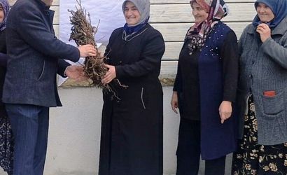 ASLANAPA’DA 13 KADIN ÇİFTÇİYE YÜZDE 75 HİBELİ 7 BİN ADET AHUDUDU FİDANI DAĞITILDI