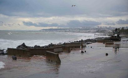 Dalgaların şiddeti sahildeki beton blokların yerinden sökülmesine sebep oldu. Yürüyüş bandı, dalgaların sürüklediği kum, taş ve çeşitli çöplerle kaplandı ve sahil şeridinde temizlenmesi gereken geniş alanlar oluştu.
