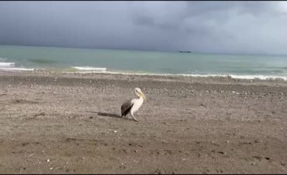 Bir süre sahilde kalan pelikan daha sonra gözden kayboldu.