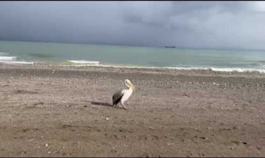 Sahile sabah saatlerinde gelen pelikan, sahilde bulunan kişiler tarafından cep telefonlarıyla görüntülendi. Kuşun zaman zaman denize yöneldiği ve sahil boyunca yürüdüğü gözlendi.