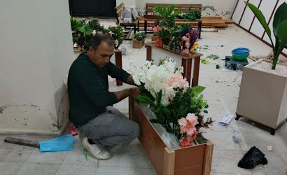 Adıyaman - Samsat Safvan Bin Muattal Anadolu İmam Hatip Lisesi'nde görevli temizlik görevlisi Seyfettin Çelik, boş zamanlarında okul deposunda bulunan tahta ve mobilya parçalarını; çiçek saksısı, raf, masa çekmecesi ve askı gibi kullanışlı eşyalara dönüştürerek okula katkı sağlıyor.