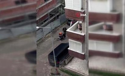 O sırada iskelenin üzerinde çalışan bir işçi, kavga eden kardeşini görünce metrelerce yükseklikten adeta örümcek adam gibi iskelenin üzerinden hızla inerek yardımına koştu. Aşağı indiğinde eline sopa aldığı ve kavgaya yetişmeye çalıştığı anlar güvenlik kamerasına yansıdı.
