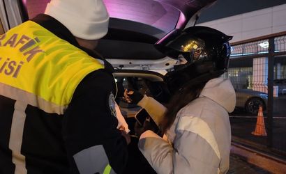 Kontrol anında sürücü, henüz zarftan çıkarmadığı ehliyetini polislere açtırmak istedi ve ehliyet zarfını trafik polisine uzattı. Trafik polisi ehliyeti zarftan çıkarırken, sürücü ve motosikletli arkadaşı ilk ceza işlemini yaşadı. Sürücüye hatalı U dönüşü yapmaktan ceza uygulandı.