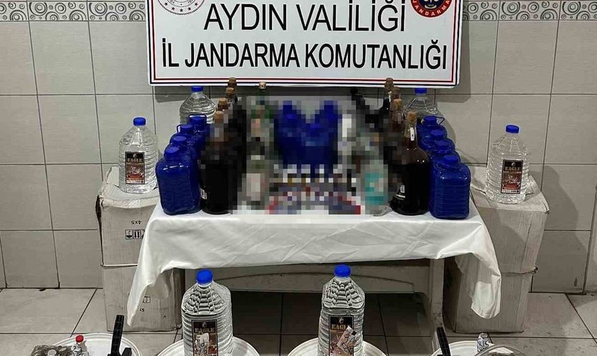 Aydın İl Jandarma Komutanlığı KOM Şube Müdürlüğü ile Bozdoğan İlçe Jandarma Komutanlığı ekiplerinin yürüttüğü çalışmada, Bozdoğan'da belirlenen adrese operasyon düzenlendi. Yapılan aramada, kaçak ve sahte alkol ürettiği ve piyasaya sürdüğü tespit edilen N.T. (57) isimli şüphelinin ikametinde çok sayıda ürün ve ekipman bulundu.