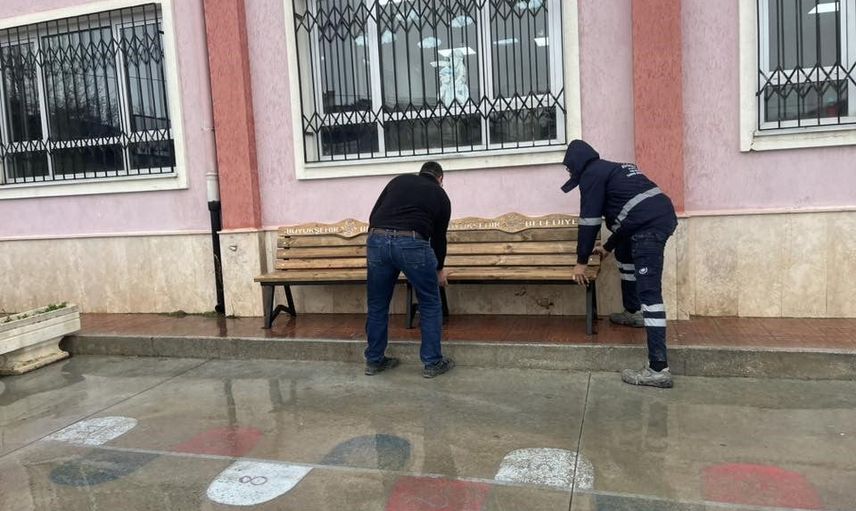 Mahalle halkı ve öğrenciler için cami ve okul çevresine yeni oturma alanları