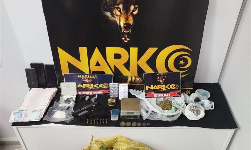 Aydın'ın Nazilli ilçesinde düzenlenen uyuşturucu operasyonunda yakalanan 2 şüpheli tutuklandı. Operasyonda 60 gram sentetik uyuşturucu, 41 gram esrar, 20 sentetik ecza, ruhsatsız tabanca, Hint keneviri yetiştirmeye yönelik çeşitli cihaz ve sıvılar ile uyuşturucudan elde edildiği değerlendirilen 25 bin lira ele geçirildi.