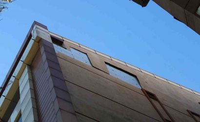 Aydın'ın Efeler ilçesinde öğle saatlerinde etkili olan rüzgar nedeniyle bir binanın dış cephe kaplaması koparak kaldırıma düştü. Çok sayıda yayaların kullandığı alana düşen metrelerce yükseklikteki parçalar şans eseri kimseye zarar vermedi.