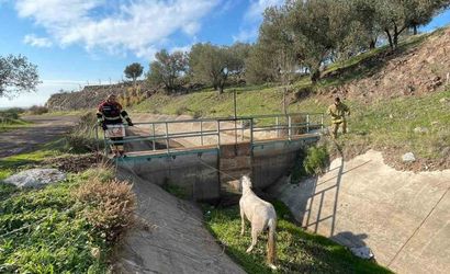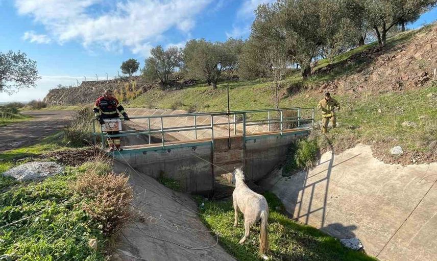 Ayvalık'ta su kanalına düşen at itfaiye tarafından kurtarıldı