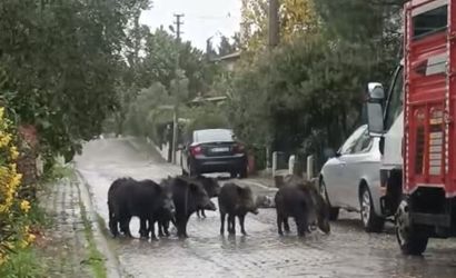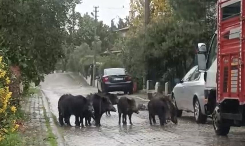 Ayvalık’ta yağışta aç kalan yaban domuzları şehir merkezine indi