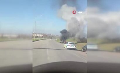 D100 Karayolu girişindeki kavşakta motor kısmından alev çıktı