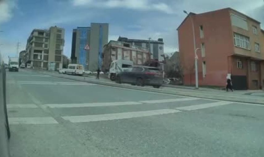 Mahmutbey Mahallesi'nde yokuşta başlayan kaza güvenlik kamerasına yansıdı